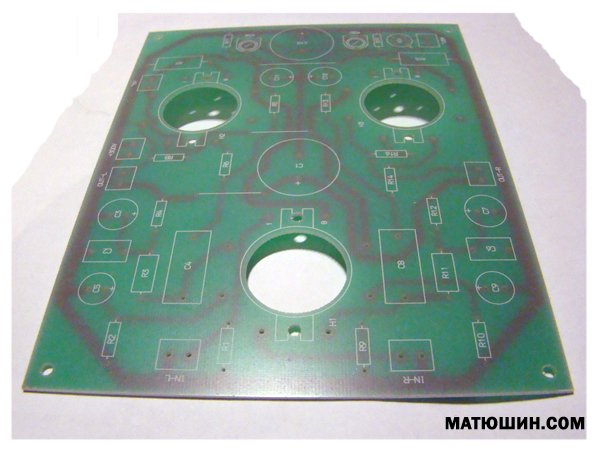 Вот печатная плата для однотактного лампового усилителя.