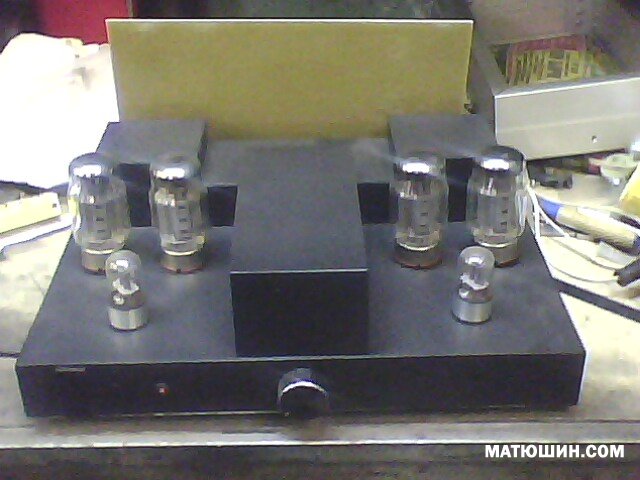 Двухтакт на КТ88 Звук достойный + коммутатор. Корпус из черного железа - в общем Монстр. Нижний 2 по 100 -реального лампового звука!