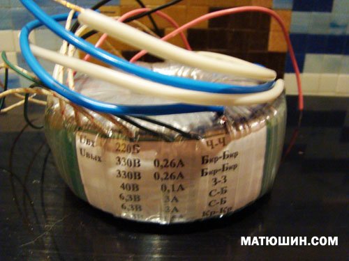 Raa-1,8К. Допустимый ток на первичке 400мА.Напряжение до 650В.Нагрузка 4,8,16 Ом.Габаритная мощность 450Вт.