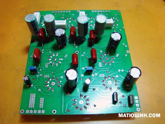 Б. Версия двухтакного усилителя на лампах ECC83,ECC82 & EL84-(2 канала). Клон оригинального усилителя ai800mk3. В данном усилителе мне понравилось все ! Начиная от схемотехнического решения и заканчивая элементной базой. С успехом развели печать , как видно из фото , только начал набивать. Поскольку процес набивки затянулся решил выложить так как есть.Следующий вариант будет уже с полной набивкой. Единственное -убрали обратную связь , но при желании ее можно востановить! Резисторы будут все MOF (MF). По кондерам посмотрю.