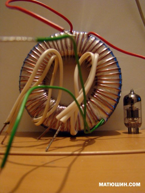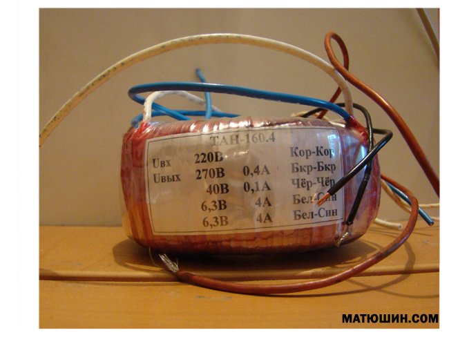 160 Вт габаритной мощности.4К рекомендовано для ламп типа ГУ50(6П3С,6П13С,Г807,6П7,EL34). Провод на первичке 0,315мм, омическое сопротивление 85 Ом, индуктивность не менее 14Гн. Нагрузка (у данного образца) 4,8.