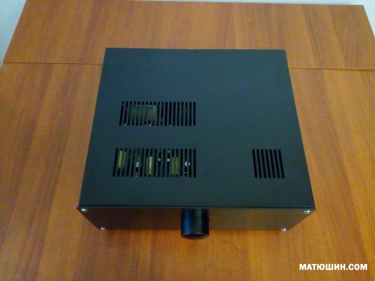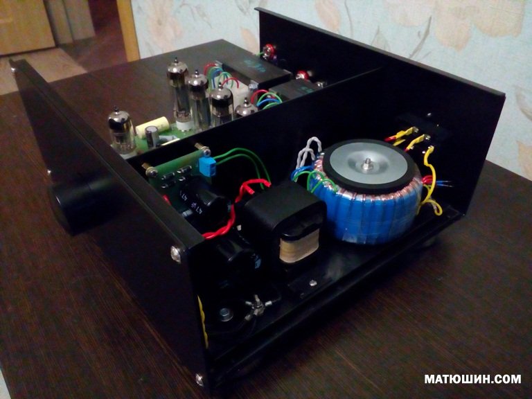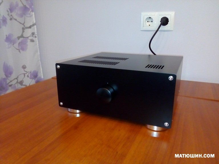 Корпус "Универсал-1" для одного RCA входа и для четырех выходных клемм, внутри корпуса предусмотрена платформа для монтажа компонентов с разделительной пластиной на сектор питание-усилитель. Краска порошковая. Размеры корпуса 300х280х120мм, размер отверстия для ручки управления регулятор громкости во фронтальной панели 42мм., разъем сеть - блок в комплекте.. В данном корпусе можно установить усилитель РР 6П15П, SE 6П15П, SE 6П1П, SE 6Ф3П с кенотронным питанием. Пример исполнения см. раздел "Ламповые усилители".