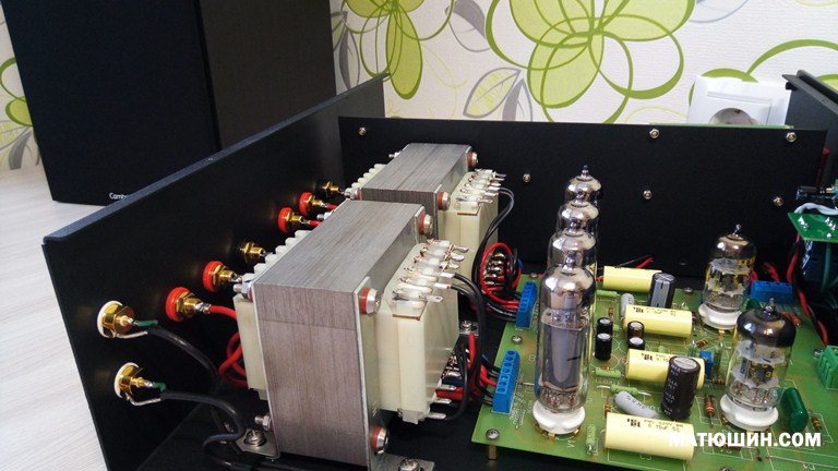 На фото усилитель Универсал-2 представлен в топовой комплектации. Для начала размеры корпуса усилителя относительно Универсал -1 увеличены и составляют 370х320х120. Силовой трансформатор усиленной габаритной мощности (для обеспечения высокого динамического диапазона), выходные трансформаторы на 120 Вт габаритной мощности, (Универсал-1-60Вт) намотанные со специальным секционированием с идеально симметричными обмотками полу плеч выходных каскадов, что обеспечивает усилителю мощности максимальную отдачу и минимальные потери при отдаче тока в нагрузку, что в свою очередь благотворно сказывается во всем динамическом диапазоне усилителя. Железо применяемое в данных трансформаторах М6 производства Германия., Надо сказать великолепный получился аппарат!!!. Усилитель, Цены на комплектацию и готовый вариант по запросу.