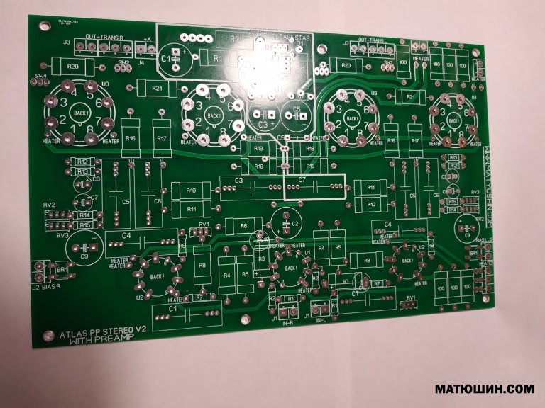 КОРРЕКТОР ВЫПОЛНЕН НА ЛАМПАХ 6Н2П -ЕВ. СХЕМНОЕ РЕШЕНИЕ ОТ ИЗВЕСТНОЙ ФИРМЫ RCA.СХЕМОТЕХНИЧЕСКИ ПРЕДУСИЛИТЕЛЬ ВЫПОЛНЕН ПО СХЕМЕ СОВМЕЩЕННОЙ ПАССИВНОЙ КОРРЕКЦИИ, ЧТО ОЧЕНЬ ПОЛОЖИТЕЛЬНО СКАЗАЛОСЬ НА ЗВУКЕ. В ЦЕПЯХ КОРРЕКЦИИ ИСПОЛЬЗОВАНЫ КОНДЕНСАТОРЫ WIMA И К71-7. НА ПРОХОДЕ ПОСТАВЛЕНЫ КОНДЕНСАТОРЫ ФИРМЫ ICEL. ОТДЕЛЬНО ХОЧЕТСЯ СКАЗАТЬ ПРО БЛОК ПИТАНИЯ КОРРЕКТОРА. БЛОК ПИТАНИЯ ВЫПОЛНЕН НА БЫСТРЫХ ДИОДАХ С RC - ФИЛЬТРАМИ ПО СХЕМОТЕХНИКЕ ФИРМЫ AUDIO NOTE . ОТСУТСТВИЕ ДРОССЕЛЯ В СХЕМЕ КАК НЕ ЛИНЕЙНОГО ЭЛЕМЕНТА ПОЛОЖИТЕЛЬНО СКАЗЫВАЕТСЯ НА ДИНАМИКЕ ВСЕГО УСТРОЙСТВА В ЦЕЛОМ.НА ПЛАТЕ БП ТАК ЖЕ ВЫПОЛНЕН СТАБИЛИЗАТОР АНОДНОГО НАПРЯЖЕНИЯ.