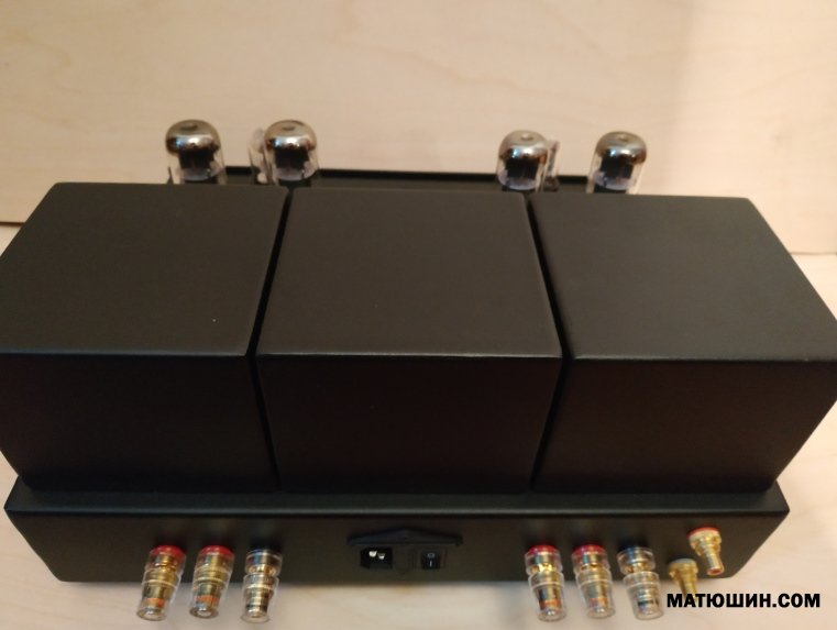 Усилитель изготовлен честно , на хорошей комплектации, выходные трансформаторы симметричные, силовой 200Вт тор, с хорошим запасом, двухсторонние печатные платы, панельки керамика. EL34 Tung-Sol Sovtek?мне если честно понравились, молодцы, на уровне, пока погреться им надо часов 20, но динамика и так видна 12.5 Вт на синусе 1В( не путать с rms) и 25 вт на 2 в синуса до клипинга, 30Вт В клипинге. По верху до 40т (-2дб). Вес порядка 20кг. Габариты 18см по колпакам 39,5 см ширина, 31см глубина