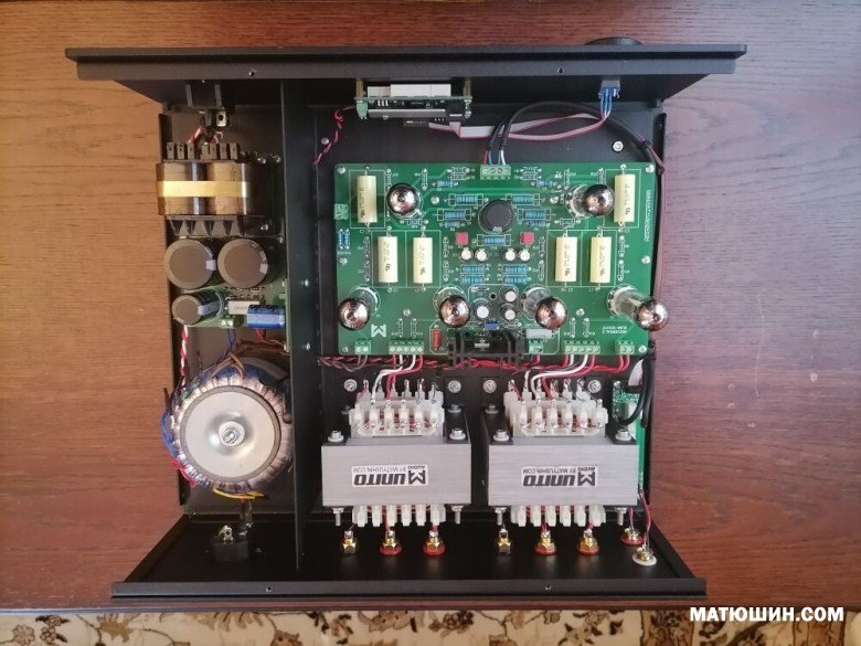 В новом исполнении играет интереснее. Все же предыдущий Универсал был немного резковат. Universal Studio так назвали новую версию. Что можно отметить — Высокие более утонченные. Бас собран. Играет помягче . ни какого намека на резкость. Основные отличия от предыдущей версии. Новая разводка печатной платы. Стабилизатор анодного питания. Увеличена емкость электролитов блока питания. Регулятор громкости Никитина. Усилитель на столько понравился , что решили сделать его в моноблоках.