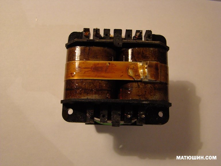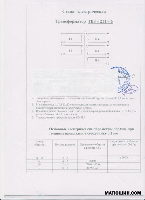 Габаритная мощность по железу 60Вт, индуктивность первичной обмотки более 20Гн, омическое 375 Ом.пропитан лаком на основе эпоксидной смолы., толщина ленты 0,3мм, сталь типа Э3408.