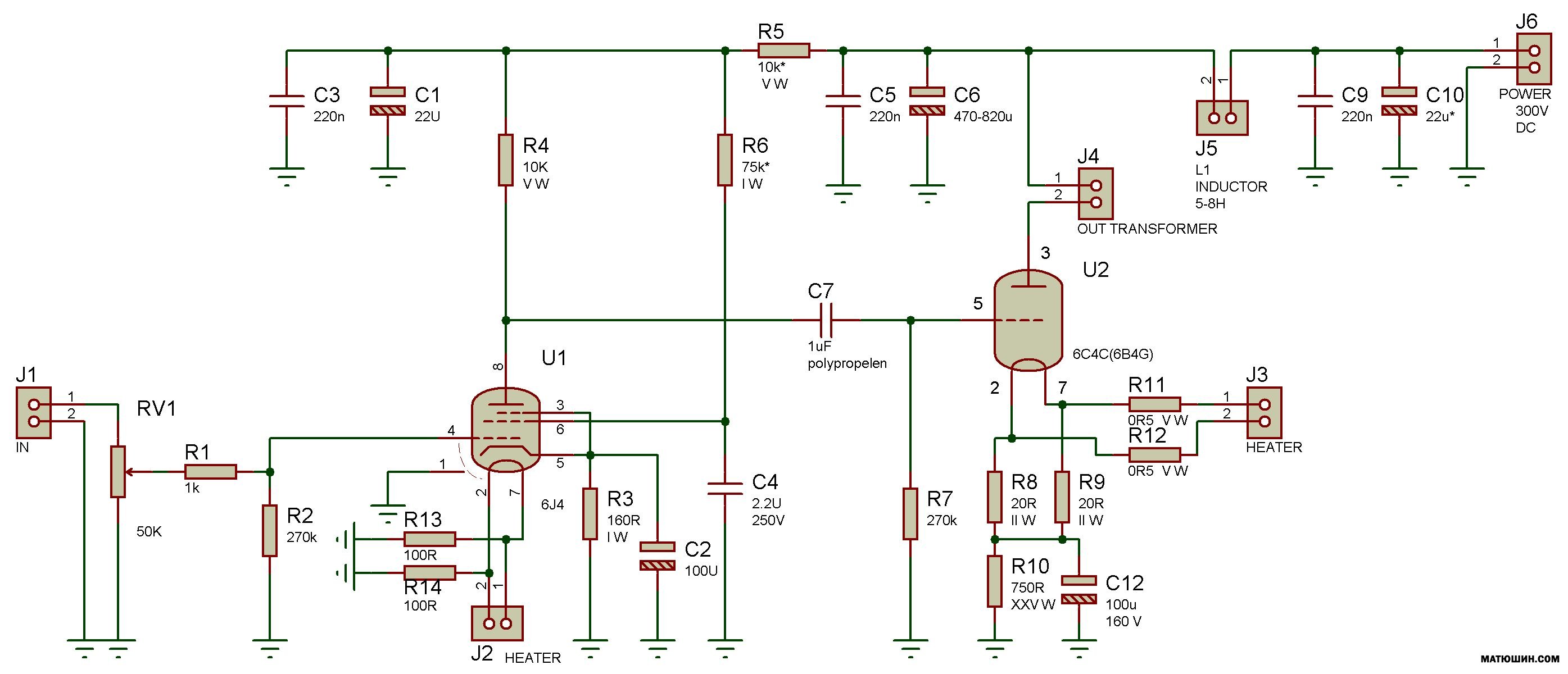 Многократно опробованный и реально рабочий вариант однотактного усилителя на прямонакалах 6С4С. Пентод 6Ж4 на входе дает богатую окраску спектра звукового сигнала и полную раскачку выходного триода! Принцип тут простой напаиваем детали и все работает!Причем весьма не плохо! Выходные подойдут ТВЗ-180 (для Кт88). силовик то же есть на сайте, так же скоро будет силовик на Ш железе так же на 180Вт.