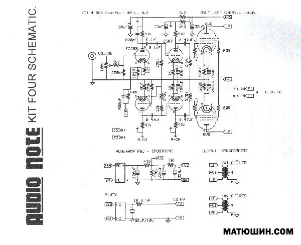 Тут я думаю все понятно. Схема взята за основу,но при разработке конструкции,мы внесли свои изменения. В базовом исполнении плата выполнена в стерео варианте, мне показалось более правильным разделить ее на моно каналы ( что бы можно было ее использовать в качестве оконечного гитарного усилителя ).Так же появляется возможность делать усилители в монофоническом варианте.Блок питания кот представлен на схеме нам не понравился и мы использовали свой вариант с дросселем 2,5 Гн индуктивности.Не плохие результаты получаются с кенотронным питанием .Размеры 70х235мм. Голышка=500р.Есть возможность собрать всю комплектацию.
