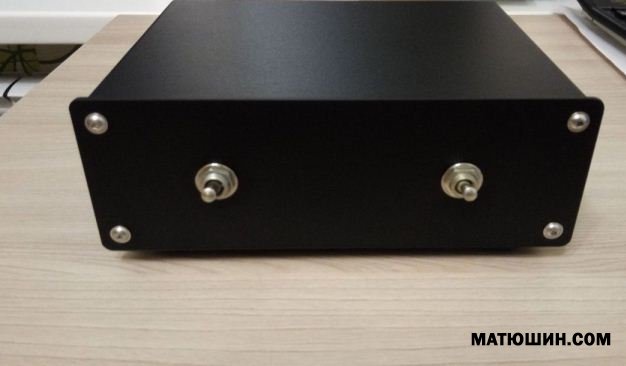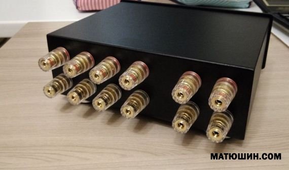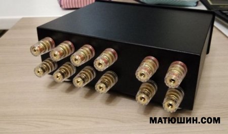 Коммутатор акустических сигналов  (усилитель - акустика). Тут собственно акустический сигнал левого и правого каналов двух усилителей коммутируется  ( тумблеры на передней панели) на акустику , что очень удобно, когда имеются различные усилители, которые приходится постоянно пере подключать к акустике. Стоимость готового изделия 12 т.